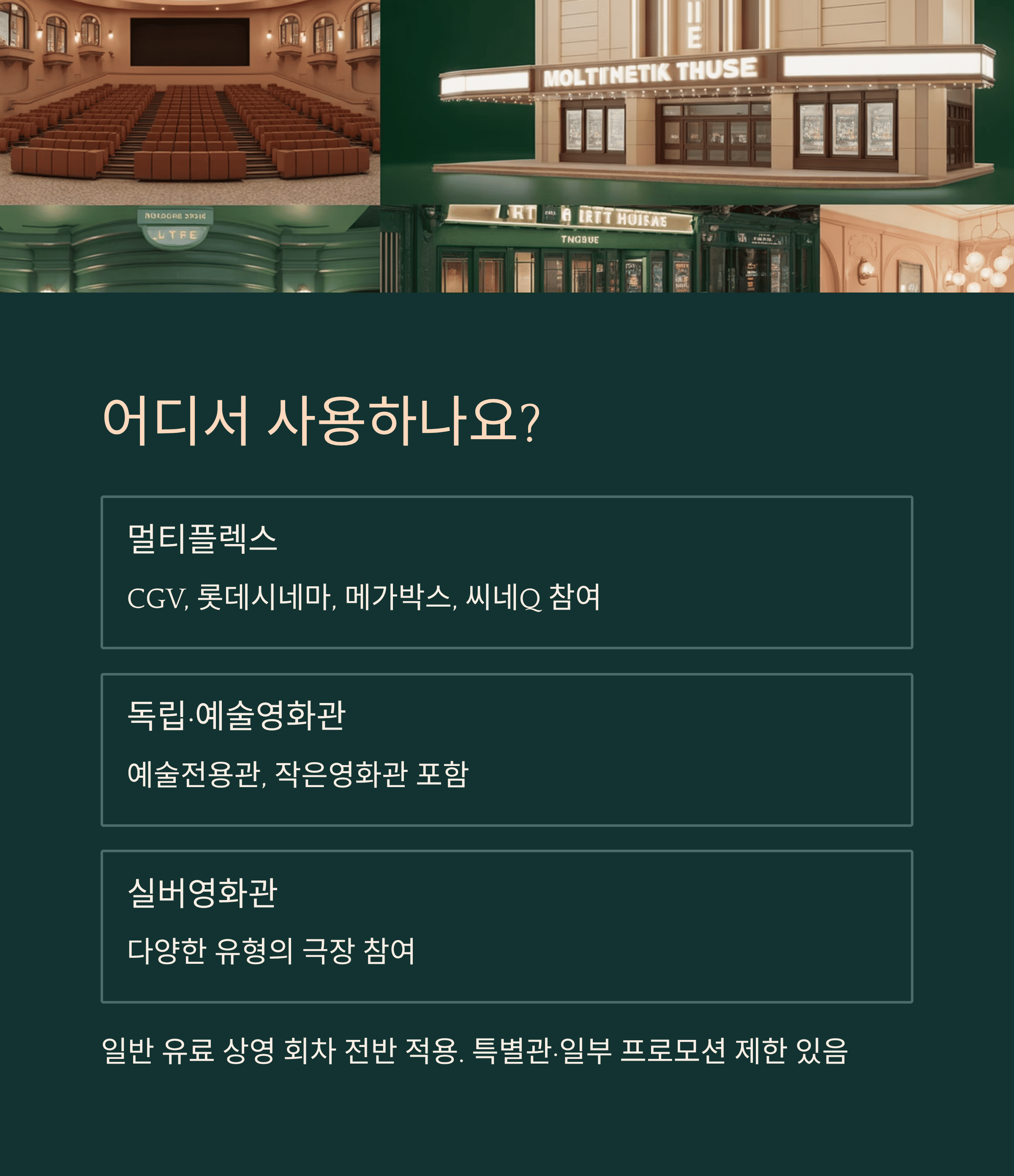 각 영화관 앱·홈페이지에서 발급·적용됩니다.