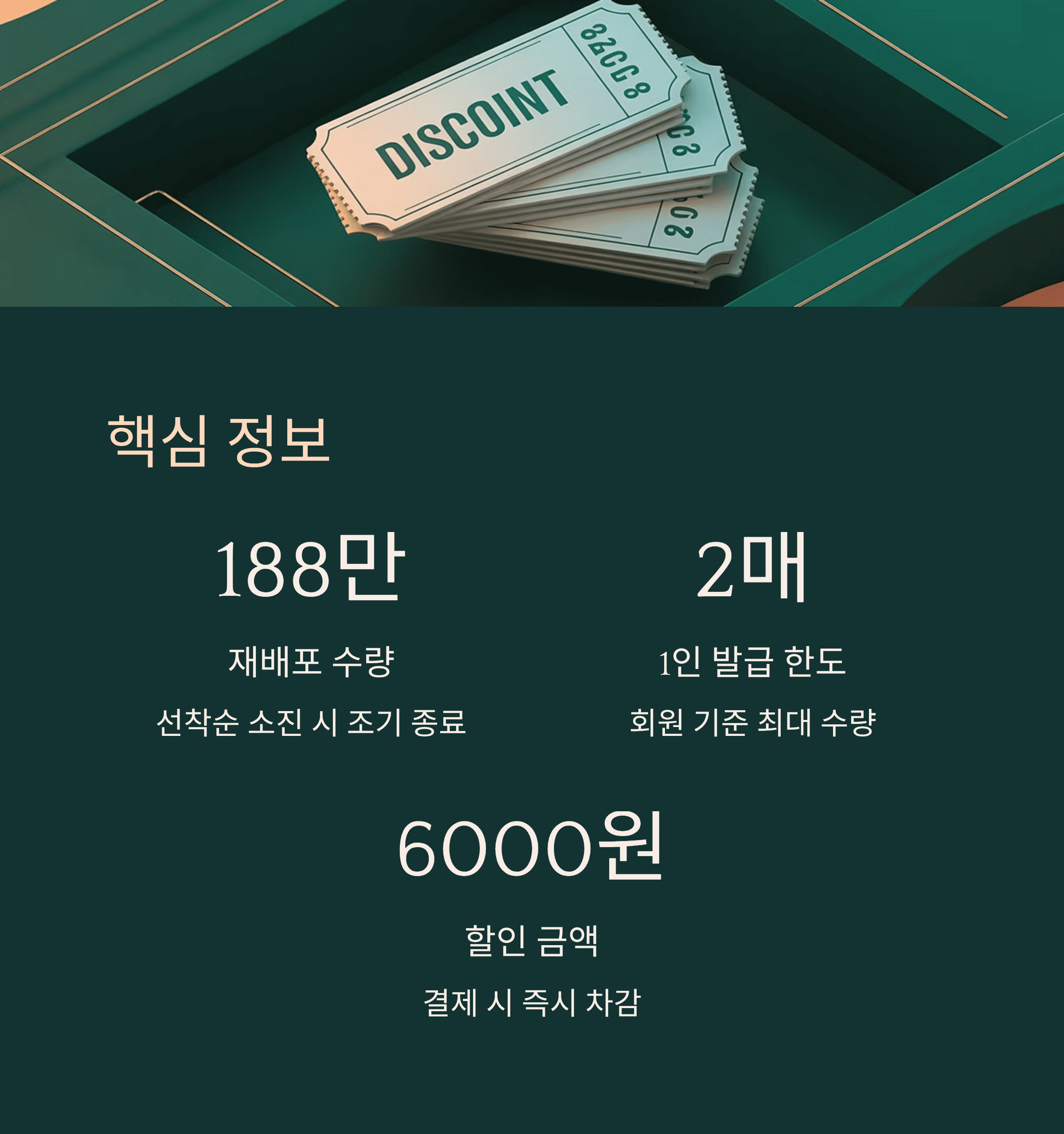 1인 2매 기준이며선착순 소진 시 종료됩니다.